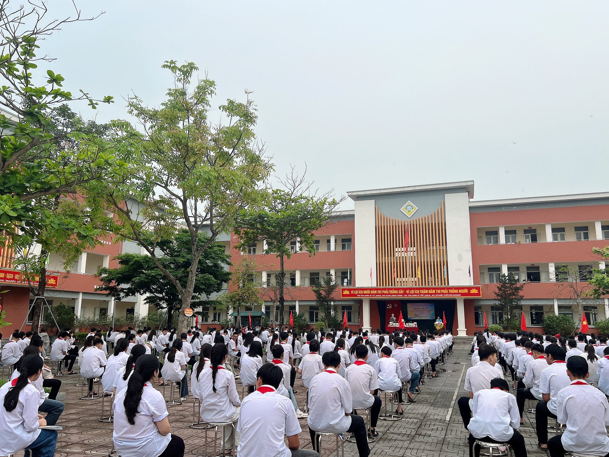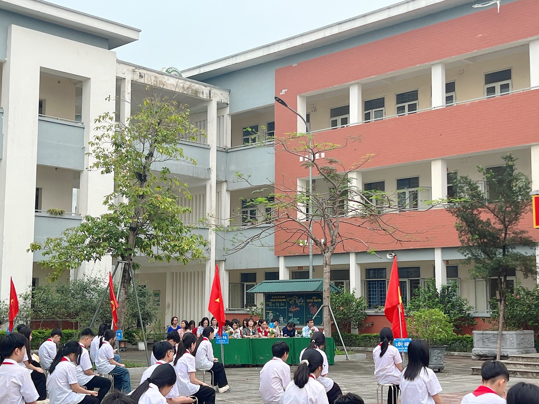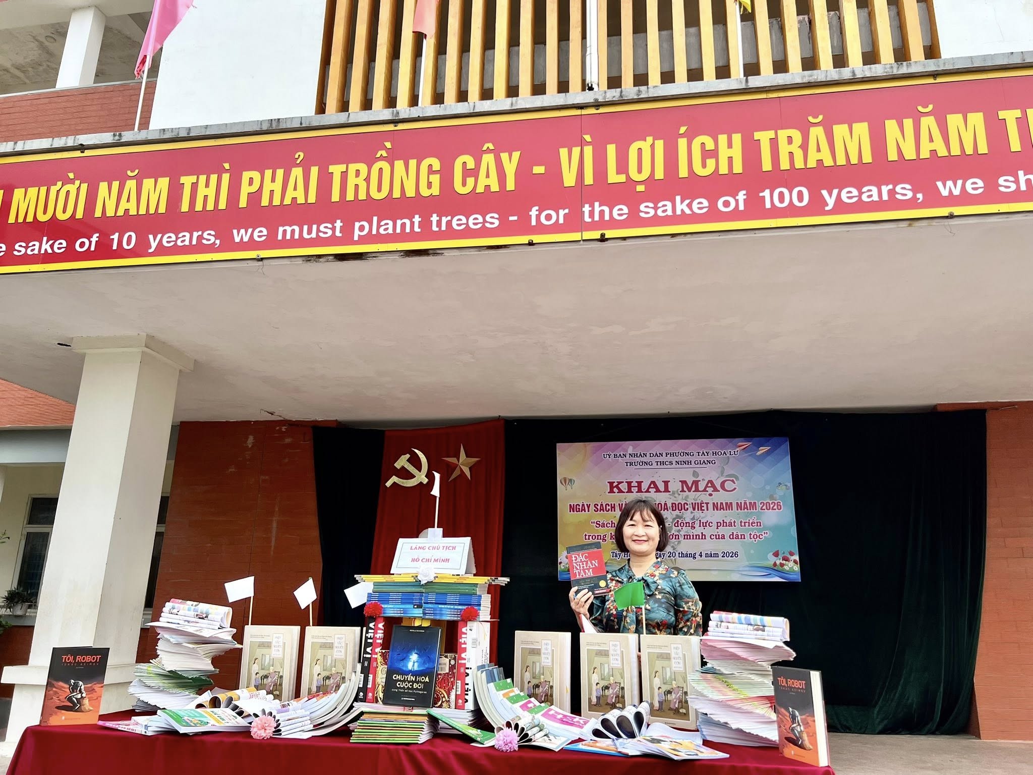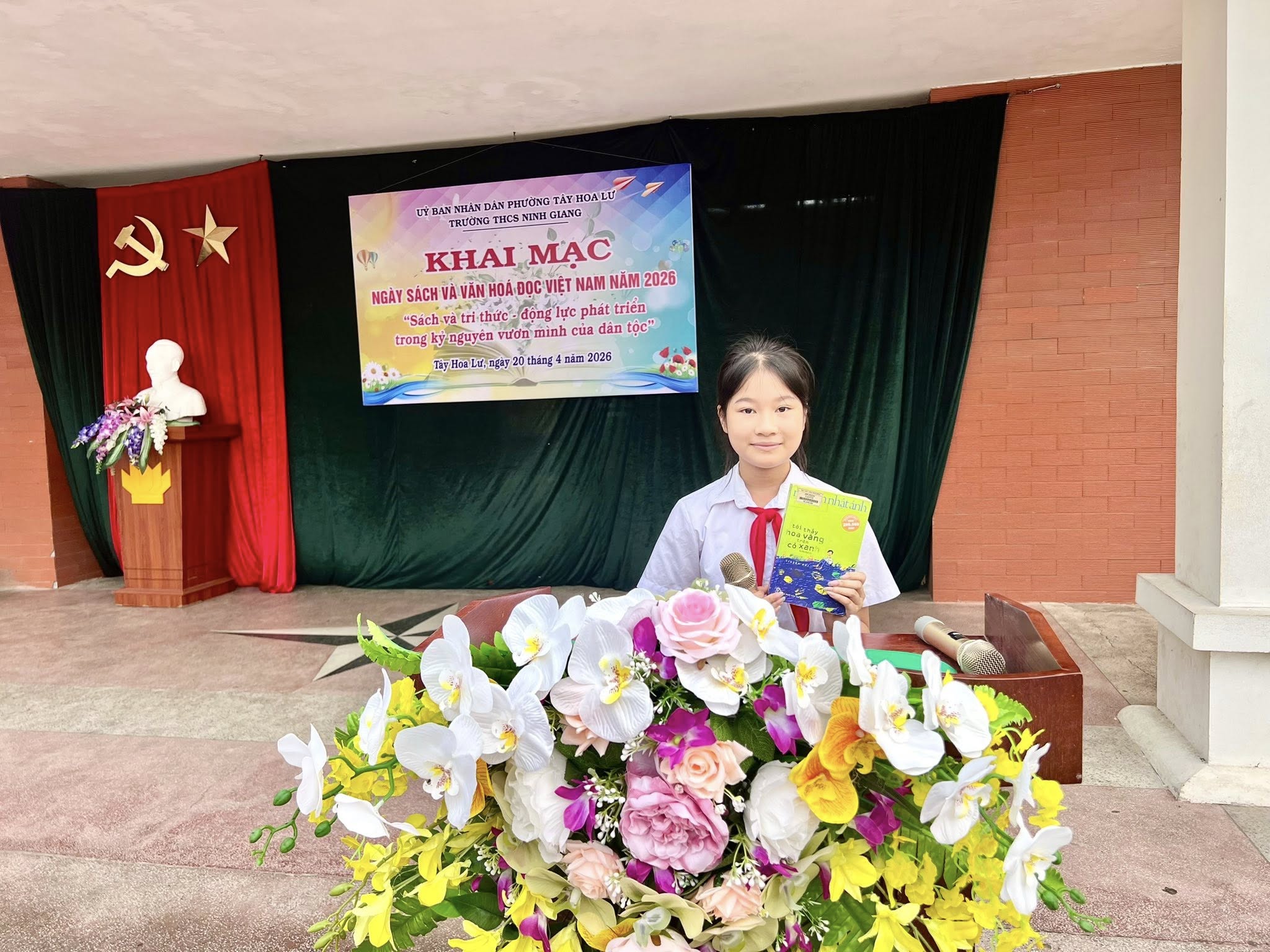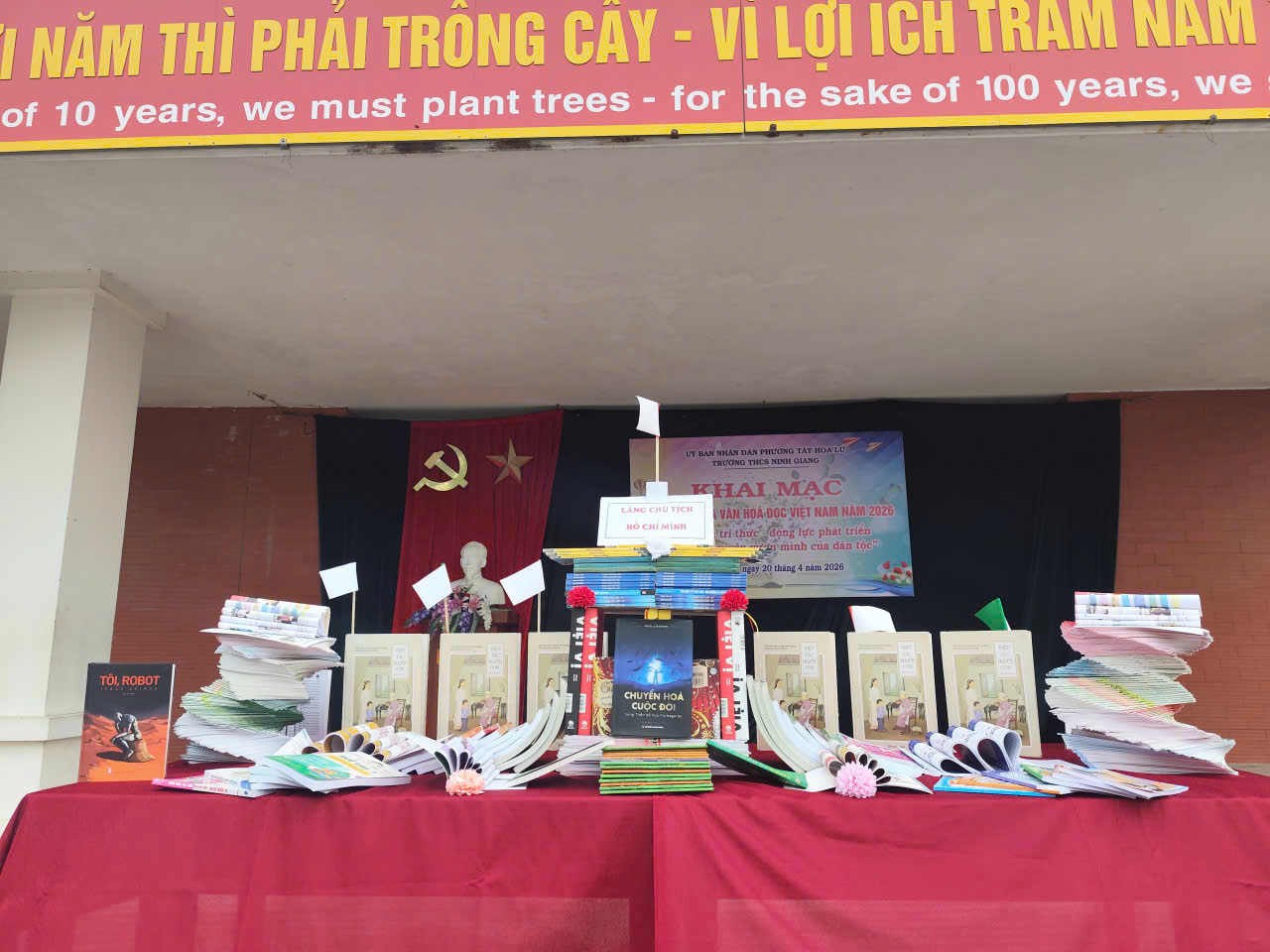 Sáng ngày 20/04/2026, trong không gian rực rỡ nắng vàng của những ngày tháng Tư lịch sử, sân trường THCS Ninh Giang như được khoác lên mình một diện mạo mới đầy sức sống. Không chỉ là tiếng ve ngân hay sắc đỏ của hoa phượng vĩ sớm, hôm nay, mái trường Ninh Giang còn rộn ràng hơn bởi hương thơm của tri thức tỏa ra từ hàng trăm trang sách trong Ngày hội đọc sách và Văn hóa đọc Việt Nam lần thứ 5.